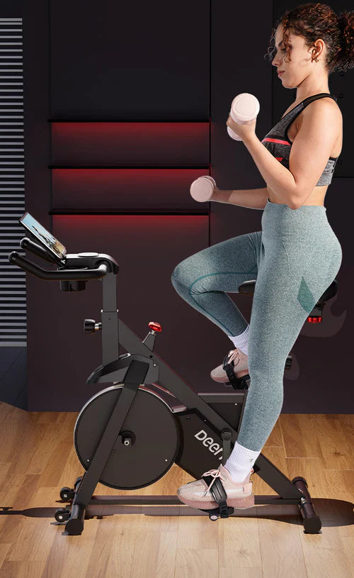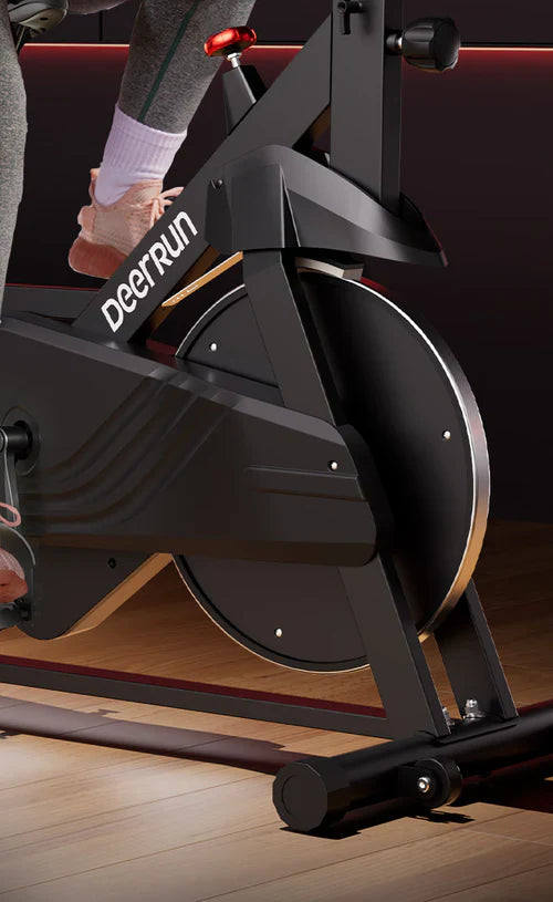 DeerRun S500 Bicicleta inteligente de interior negra con resistencia magnética ajustable, cinturón silencioso y aplicación PitPat