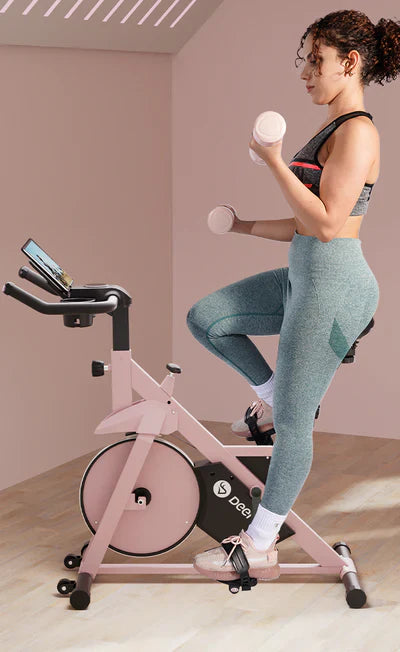 DeerRun S500 Bicicleta inteligente de interior Rose con resistencia magnética ajustable, cinturón silencioso y aplicación PitPat