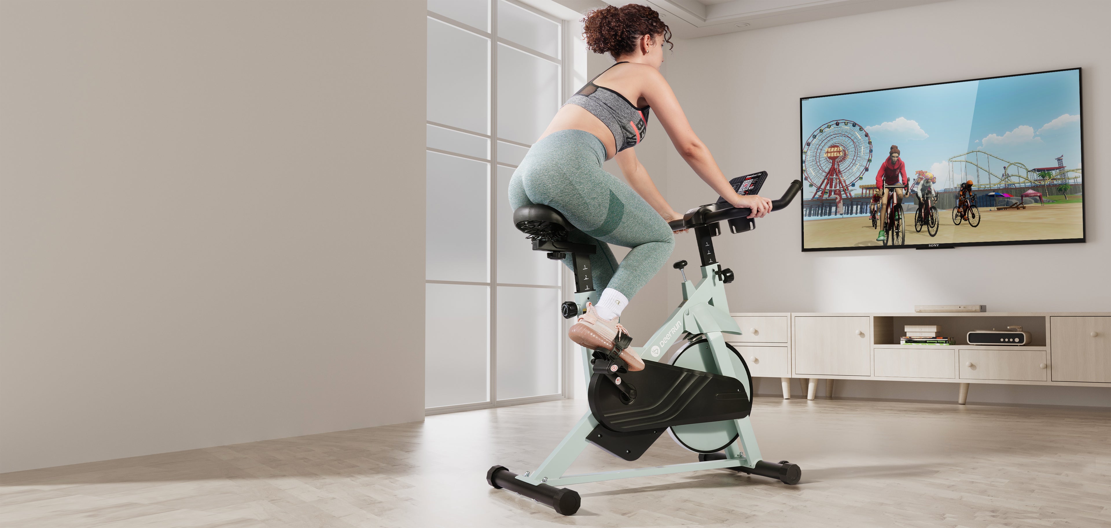 Te presentamos la bicicleta estática inteligente ajustable S500, ahora disponible en un elegante verde menta, perfecta para un look femenino. Equipada con asiento y manillar ajustables para un ajuste perfecto, además de monitoreo en tiempo real y conectividad Bluetooth para entrenamientos interactivos, esta bicicleta compacta está diseñada para tu hogar. ¡Alcanza tus objetivos de fitness con estilo con la S500!